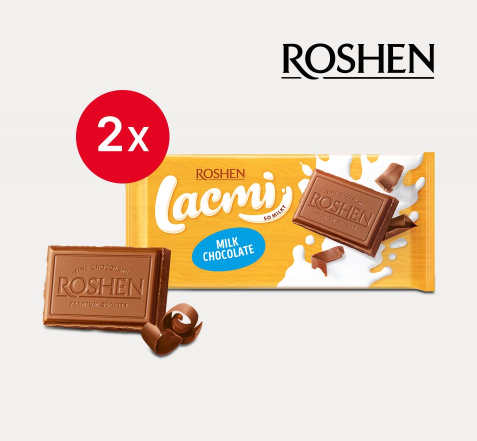 No 02.09.2024. līdz 30.09.2024. iegādājies Roshen produktus vismaz EUR 15 bez PVN vērtībā un saņem piena šokolādi "Roshen" Lacmi (90g x 2gab) dāvanā!