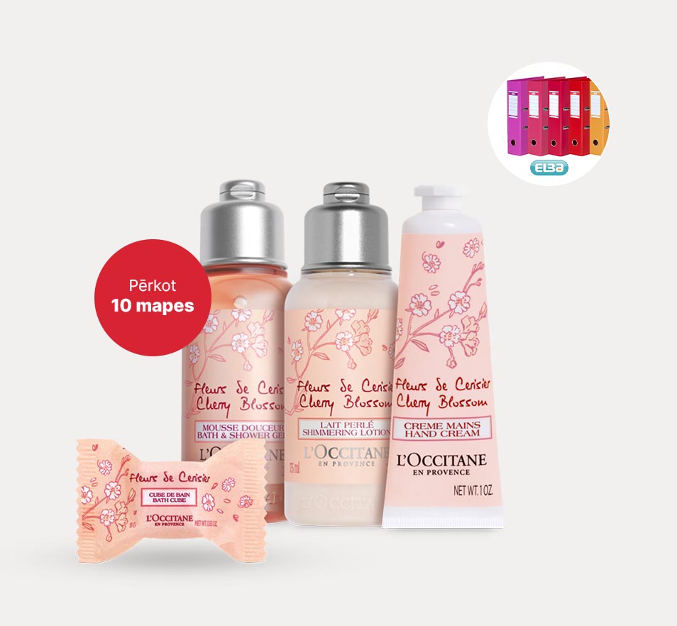 - vismaz 10 Elba mapes un saņem L'Occitane "Cherry Blossom" komplektu dāvanā*;