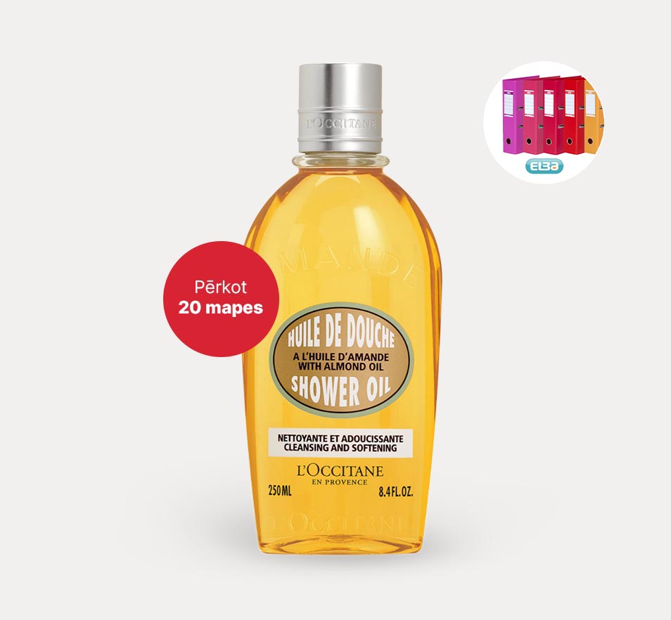 **Papildus L'Occitane mandeļu dušas eļļai saņemsiet arī sešus L'Occitane populārāko produktu paraudziņus.