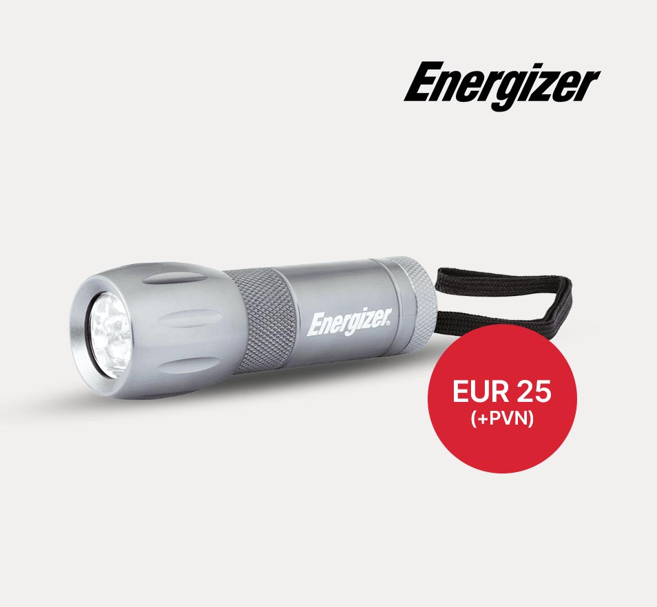 - Iepērkoties vismaz 25 EUR bez PVN vērtībā saņem “Energizer” LED metāla lukturi dāvanā!