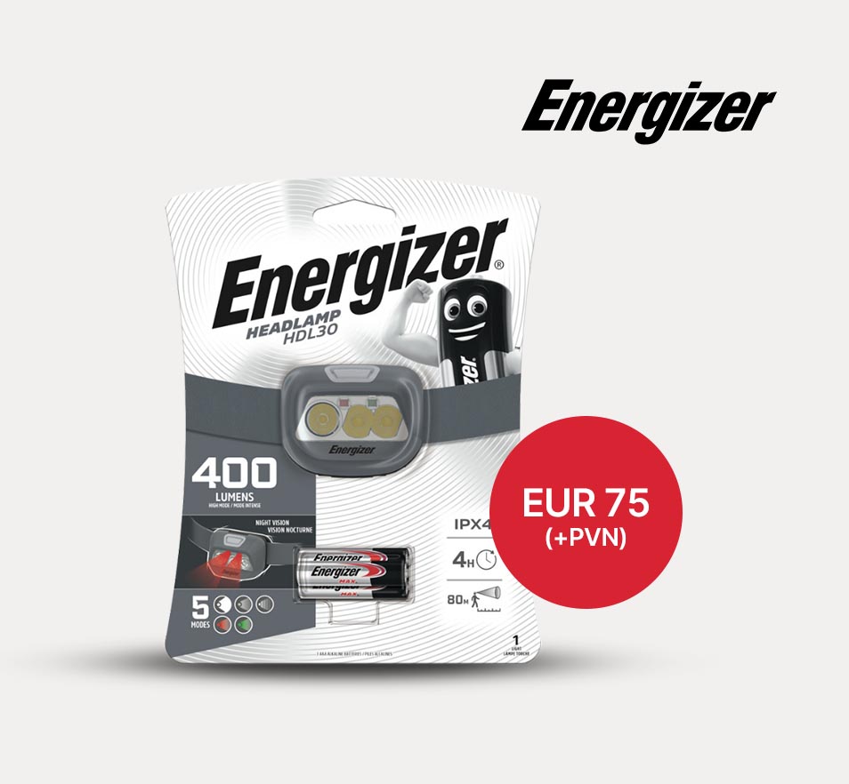 - Iepērkoties vismaz 75 EUR bez PVN vērtībā saņem “Energizer” galvas lukturi dāvanā!