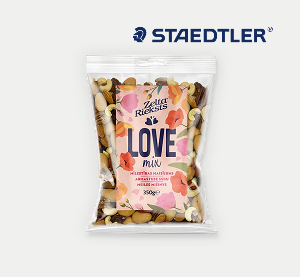 No 05.03.2025. līdz 31.03.2025. iegādājies Staedtler produktus vismaz EUR 15 bez PVN vērtībā un saņem Riekstu maisījumu Mīlestība, (350g) dāvanā!