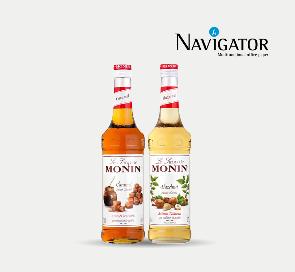 No 01.04.2025. līdz 05.05.2025. iegādājies Navigator produktus vismaz EUR 109 bez PVN vērtībā un saņem MONIN sīrupu komplektu (2 veidi) dāvanā!