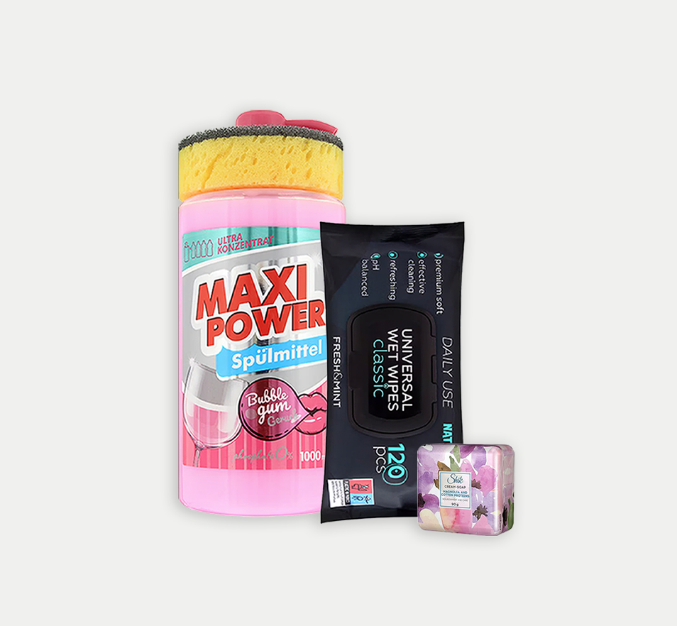 Trauku mazgāšanas želeja ar dozatoru un trauku mazgāšanas sūkli Maxi Power, bubble gum, 1000ml;