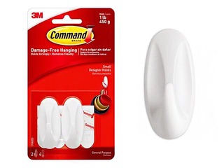 Pakaramais Command M, plastmasas ar metāla āķi, pielīmējams, balts