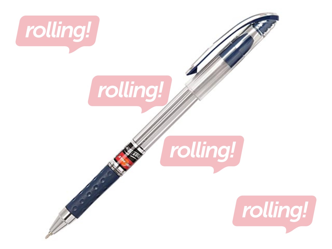 Pildspalva ar caurspīdīgu korpusu un vāciņu, tintes krāsas satvēriena zonu un klipša elementiem, hromētu uzgali.