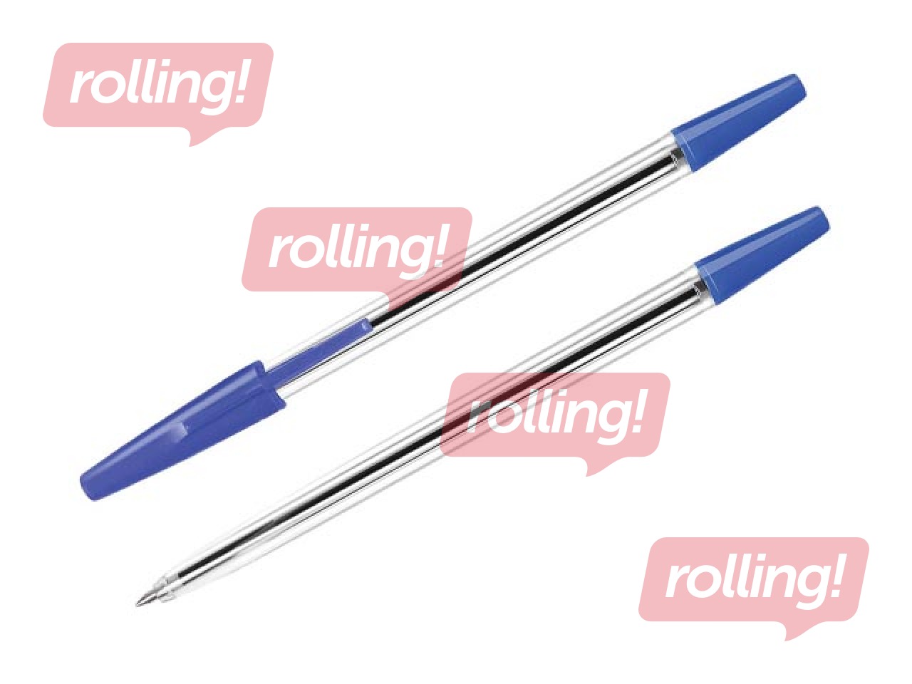 Lodīšu pildspalva ar bezkrāsainu korpusu un maināmu kodolu. Tintes krāsa zila, līnijas platums 1.0mm.