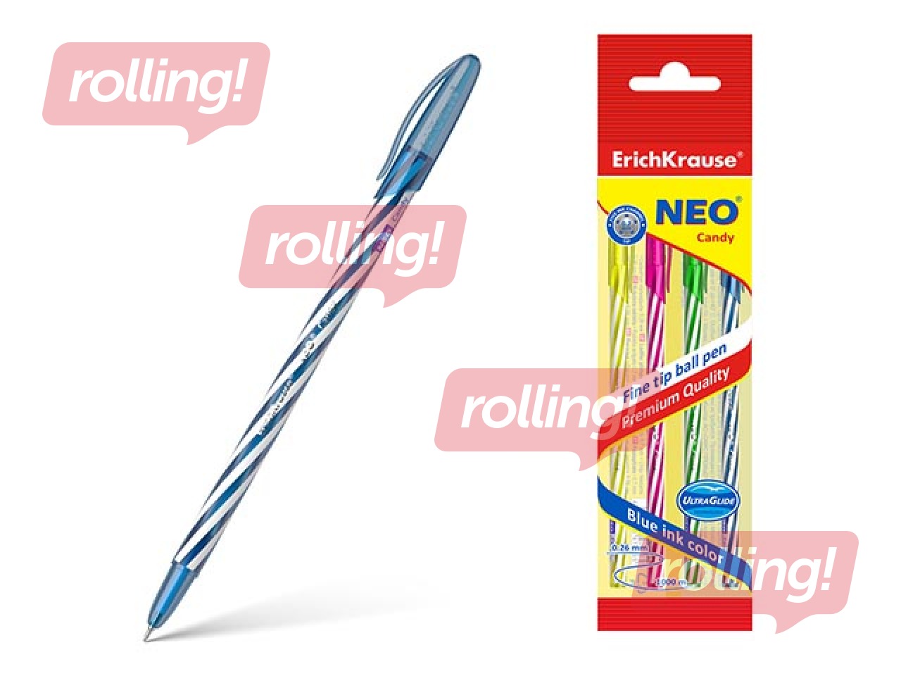 Lodīšu pildspalvu komplekts ErichKrause Neo Candy, zila tinte, 4 gab.