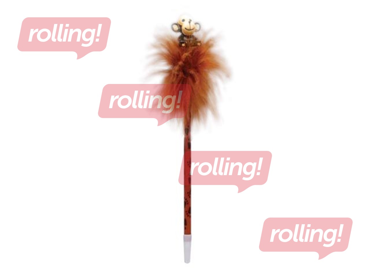 Lodīšu pildspalva ar brūnas krāsas spalvām un pērtiķi.