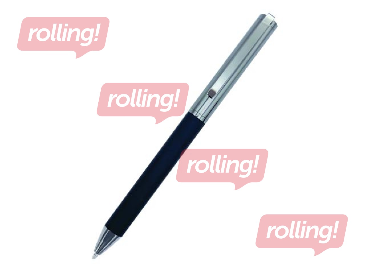 Metāla lodīšu pildspalva, pagriežama melnā krāsā.