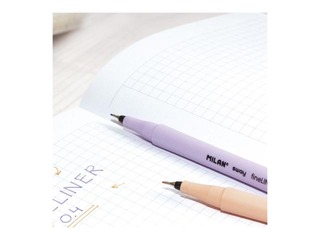 Komplekts, kurā ir 5 smalki flomāsteri SWAY fineliner 0.4mm Pastel Edition. Pasteļkrāsas: vaniļas dzeltena, piparmētru zaļa, lavandas ceriņkrāsa, aprikožu oranža un austeru pelēka. Flomāsteru uzgalis ar metāla balstu. Korpuss ir ar tādu pašu krāsu kā tinte (uz ūdens bāzes). SWAY dizains ar ergonomisku apaļu formu. Vāciņu var piestiprināt pildspalvas galā. Oriģinālu dizainu izveidojis pats MILAN R&D departaments. Korpuss ļauj jums salocīt vāku un ievietot pildspalvas ērtā darbvirsmas displejā.