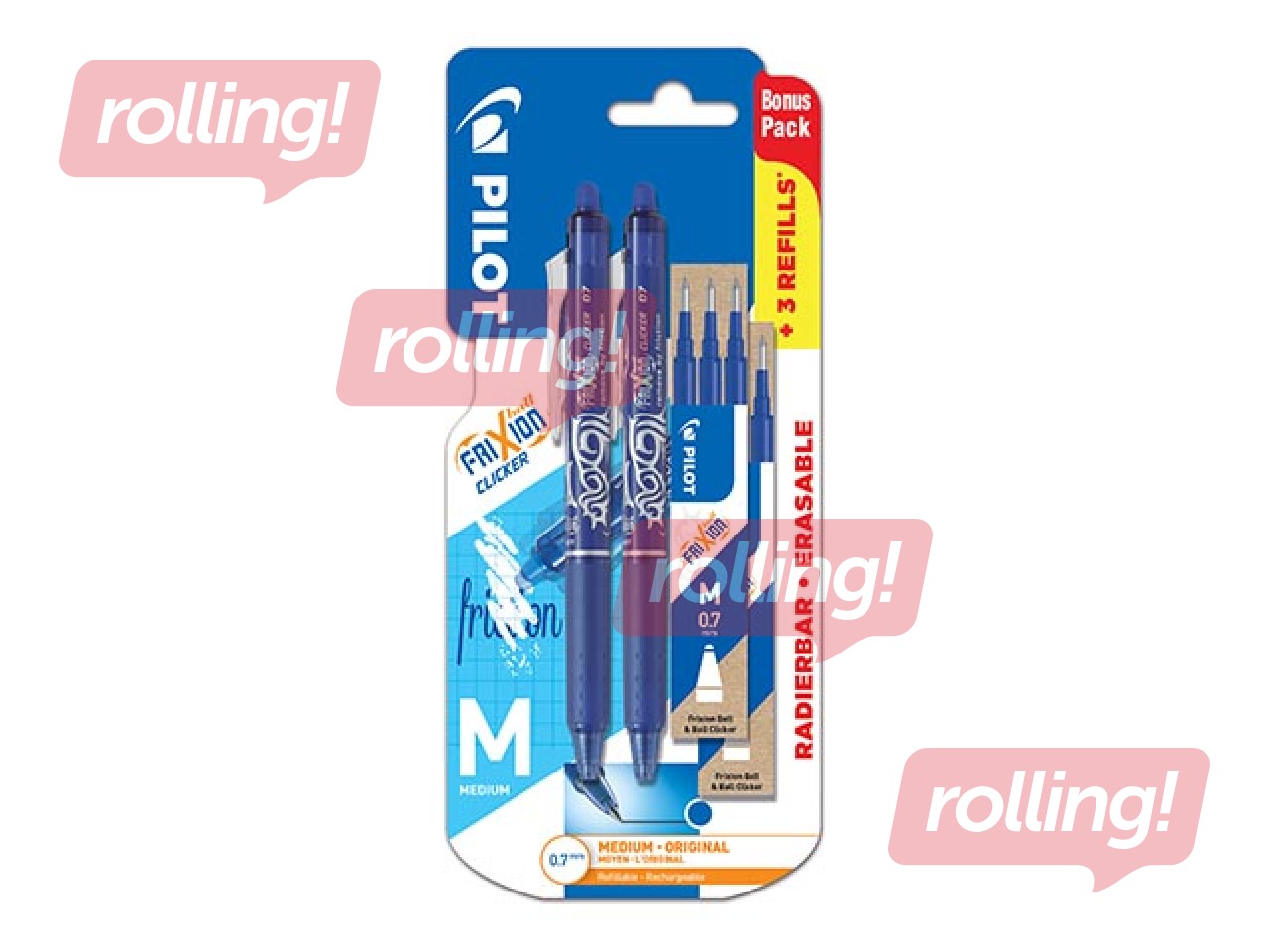 Komplekts: pildspalva rollers Pilot Frixion+ serdeņi, dzēšama, 0.7mm, zila tinte