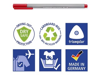 Flomāsterpildspalva Staedtler Triplus fineliner, 0.3mm, sarkana