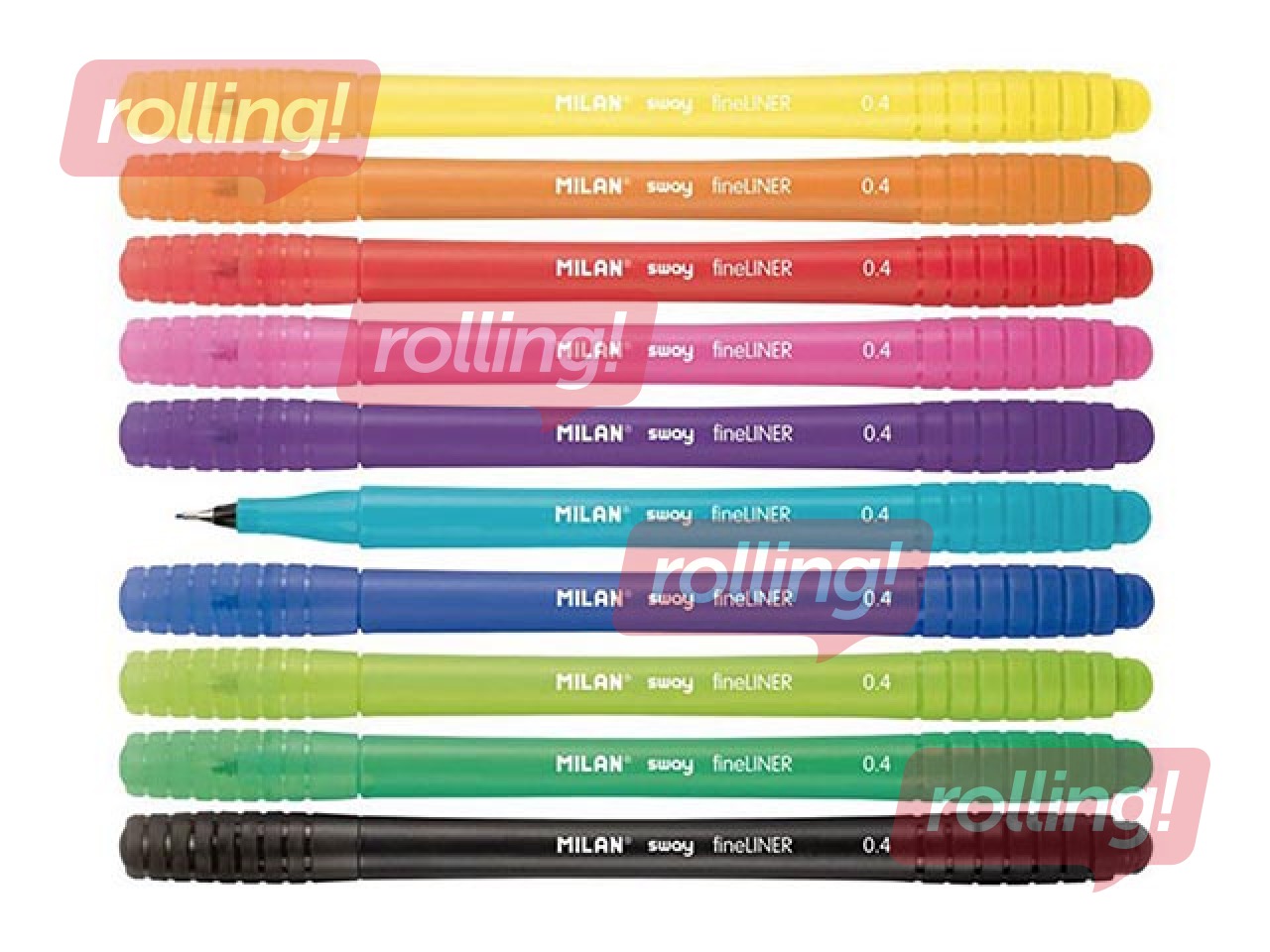 Smalki flomāsteri SWAY fineliner 0.4 mm. Flomāsteru uzgalis ar metāla balstu. Korpuss ir ar tādu pašu krāsu kā tinte (uz ūdens bāzes). SWAY dizains ar ergonomisku apaļu formu. Uzgali var piestiprināt pildspalvas galā. Pieejamas 10 krāsas: dzeltena, oranža, sarkana, rozā, ceriņi, zila, gaiši zila, zaļa, gaiši zaļa un melna.