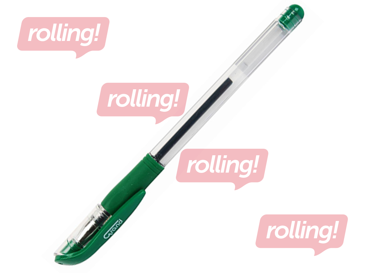 Gēla pildspalva ar caurspīdīgu korpusu un ērtu gumijas atbalstu pirkstiem. Gumijas atbalsts atbilst tintes krāsai. Caurspīdīgs korpuss ļauj kontrolēt tintes plūsmu.