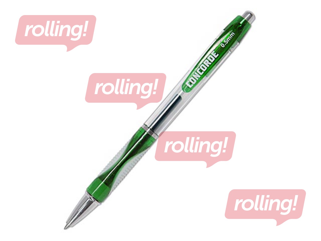 Automātiska gēla pildspalva ar caurspīdīgu korpusu un ērtu gumijas atbalstu pirkstiem. Gumijas atbalsts atbilst tintes krāsai. Līnijas platums 0.5 mm.