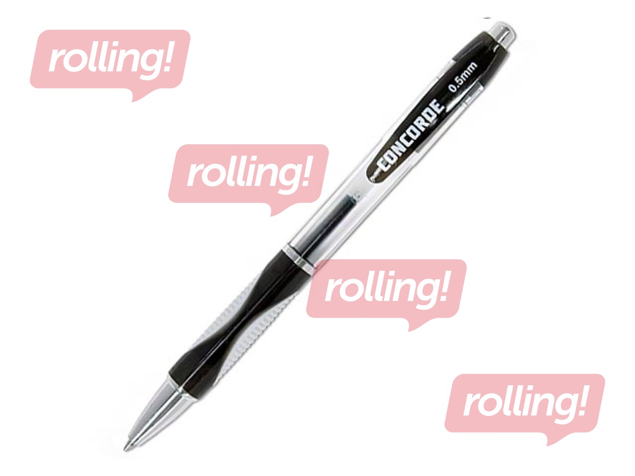 Automātiska gēla pildspalva ar caurspīdīgu korpusu un ērtu gumijas atbalstu pirkstiem. Gumijas atbalsts atbilst tintes krāsai. Līnijas platums 0.5 mm.