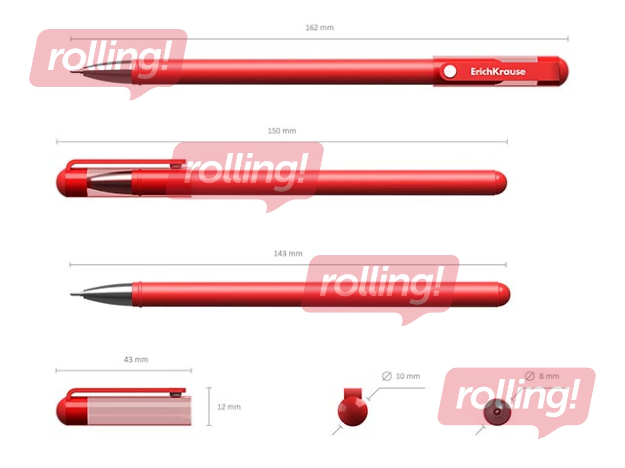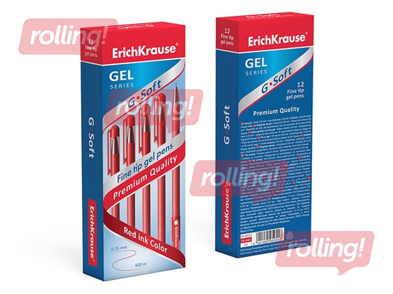 Gēla pildspalva ErichKrause G-Soft, 0.38mm, sarkana