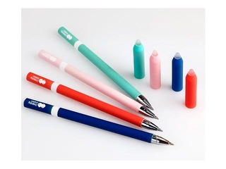 Zilas krāsas gēla pildspalvu komplekts, dzēšama. Rakstīto tekstu var viegli izdzēst, pateicoties unikālajai tintes formulai. Dzēšgumija novietota pildspalvas galā. Mīksta virsma atvieglotai un vieglai rakstīšanai. Līnijas platums 0,5 mm, kristālzila tinte.