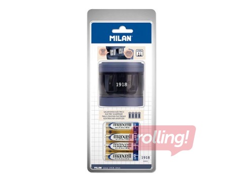 Zīmuļu asinātājs dubultais ar konteineru, elektriskais ar baterijām, Milan 1918, zils