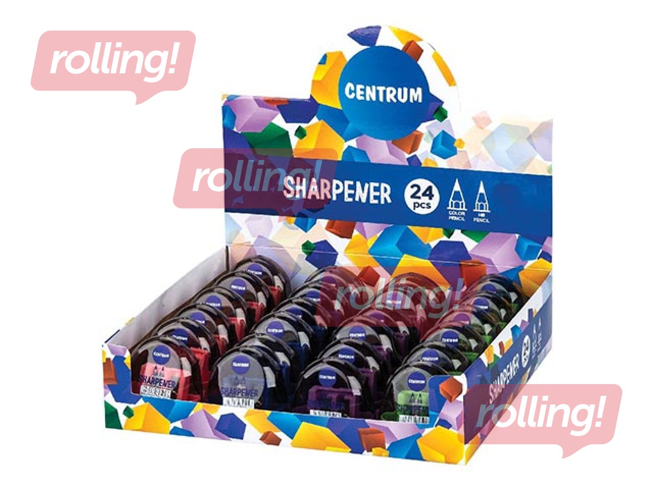Zīmuļu asinātājs dubultais ar konteineru Centrum, dažādas krāsas