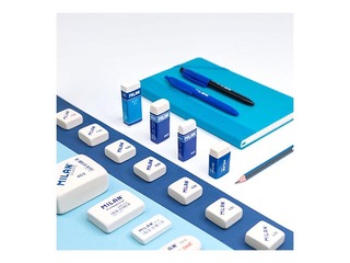 Mīksta sintētiskā gumijas dzēšgumija. Piemērota dažādu grafīta zīmuļa līniju dzēšanai no jebkura veida papīra. Individuāli iepakota. Ar zilu kartona ietvaru.