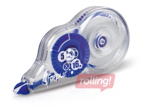 Korekcijas lente. Nodrošina precīzu, ātru un tīru teksta labošanu uz jebkura papīra. Korekcijas rolleris bez šķīdinātāja. Novietot korekcijas rolleri uz gludas un cietas virsmas un novilkt līniju viegli to saspiežot.