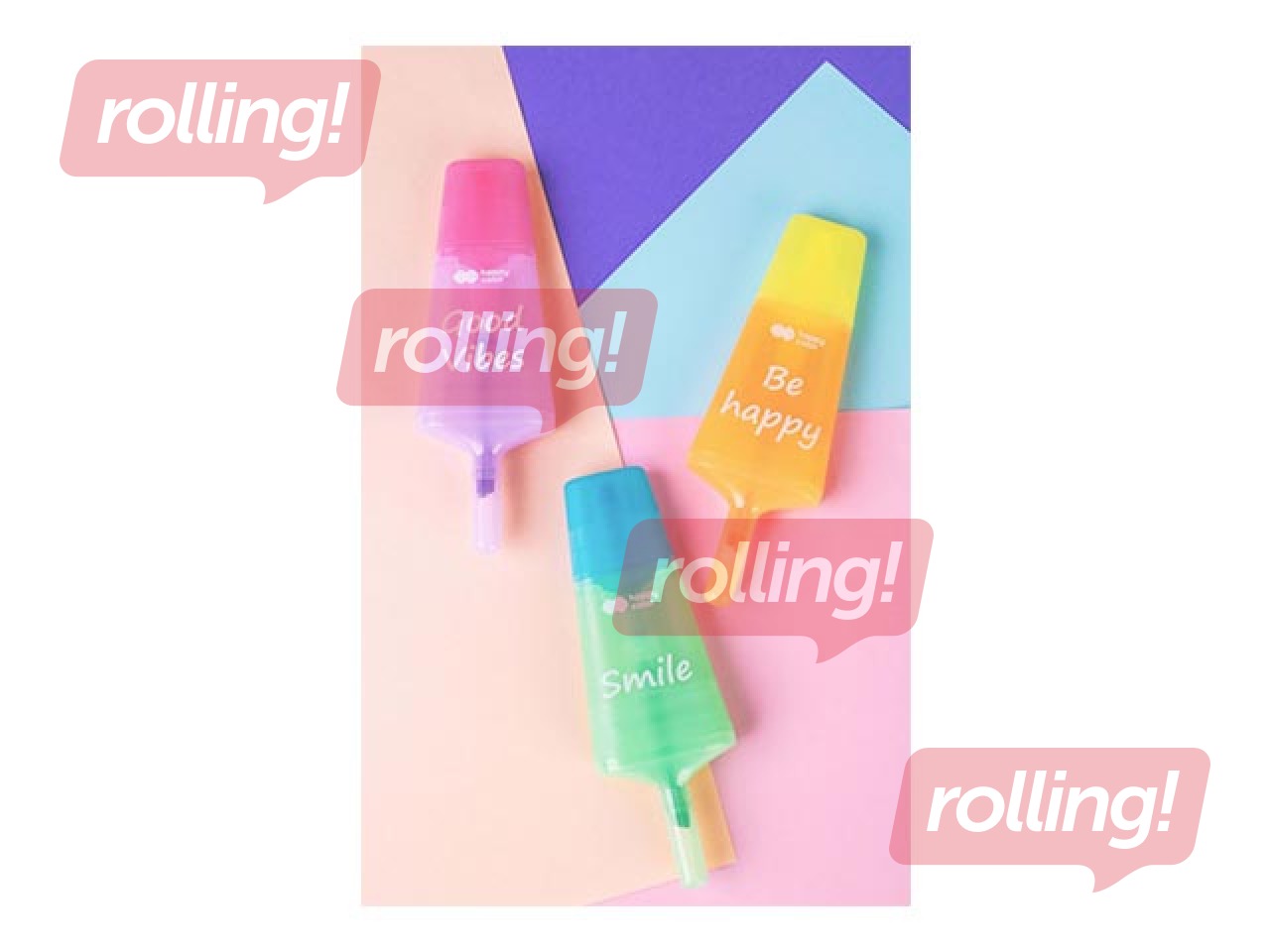 . Divkrāsains saldējuma formas marķieris ar jautriem saukļiem. Patīkami, augļu aromāti: dzeltens - banāns, apelsīns - apelsīns,