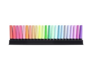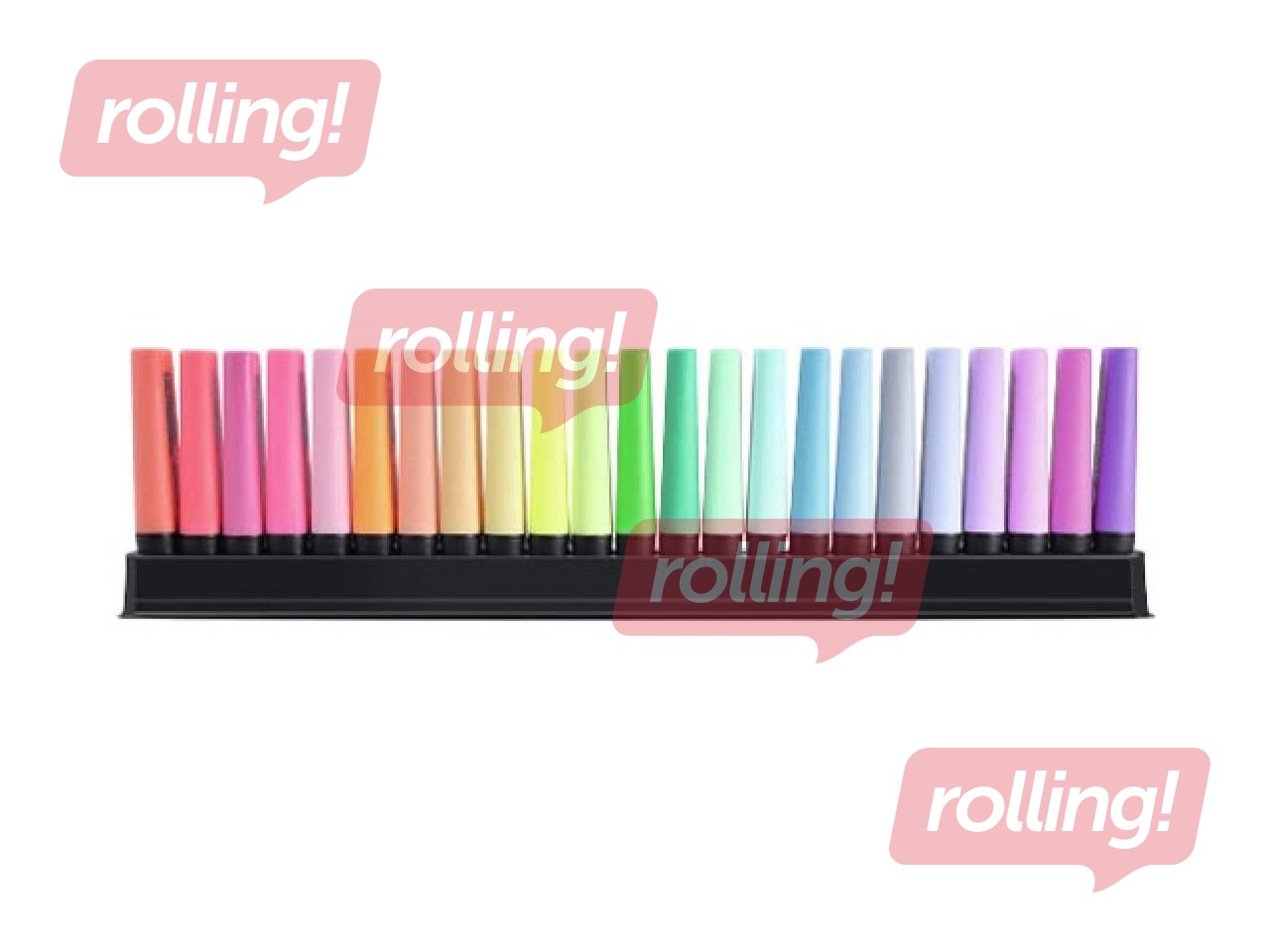 Komplektā ietilpst marķieri 9 fluorescentās un 14 modernās pasteļtoņu krāsās .