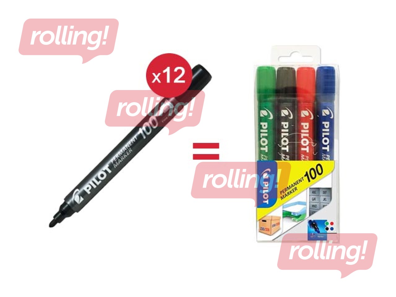 Iegādājies vismaz 12 gab. Permanentos marķierus Pilot 100 (melns, 1mm) un saņem dāvanā Permanento marķieru komplektu Pilot 100 (4 krāsas)!