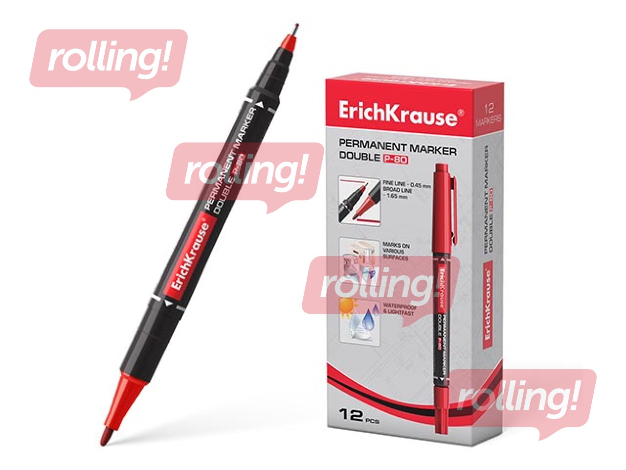 Permanents marķieris ErichKrause P-80, divpusējs, sarkans, 0.45/1.65mm