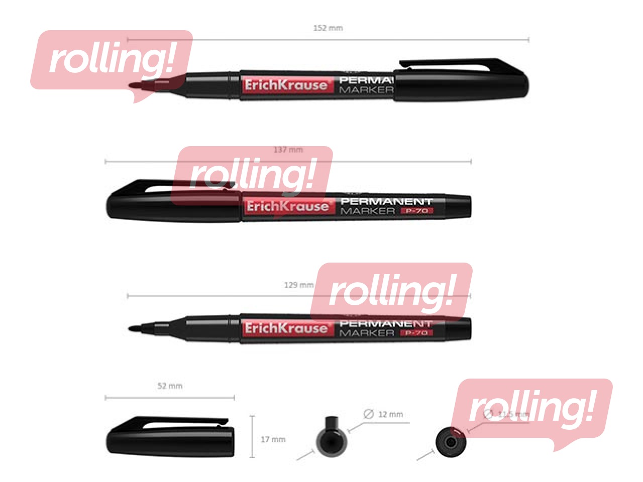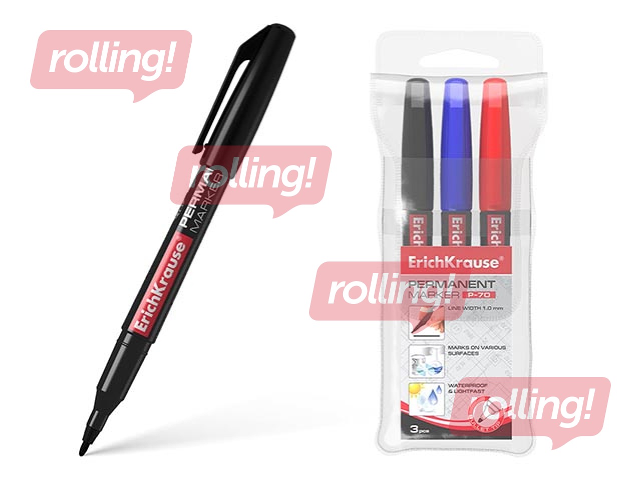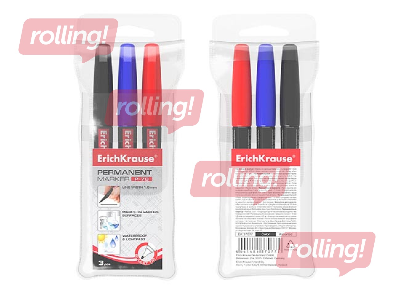 Permanento marķieru komplekts ErichKrause P-70, 1mm, 3 krāsas