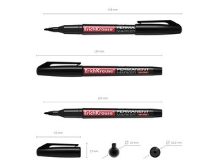 Marķieru komplektā ietilpst melns, zils un sarkans marķieris. Tas ir Noturīgs, kā arī piemērots rakstīšanai un marķēšanai uz gandrīz visām virsmām, ieskaitot CD/DVD diskus un OHP filmas. Līnijas platums - 1 mm. Tinte uz spirta bāzes ir ūdensizturīga, gaismas izturīga un netoksiska, nesatur ksilolu un toluolu. Uzglabāšanas laiks ir 5 gadi. Maksimālais rakstīšanas garums ir 450m.