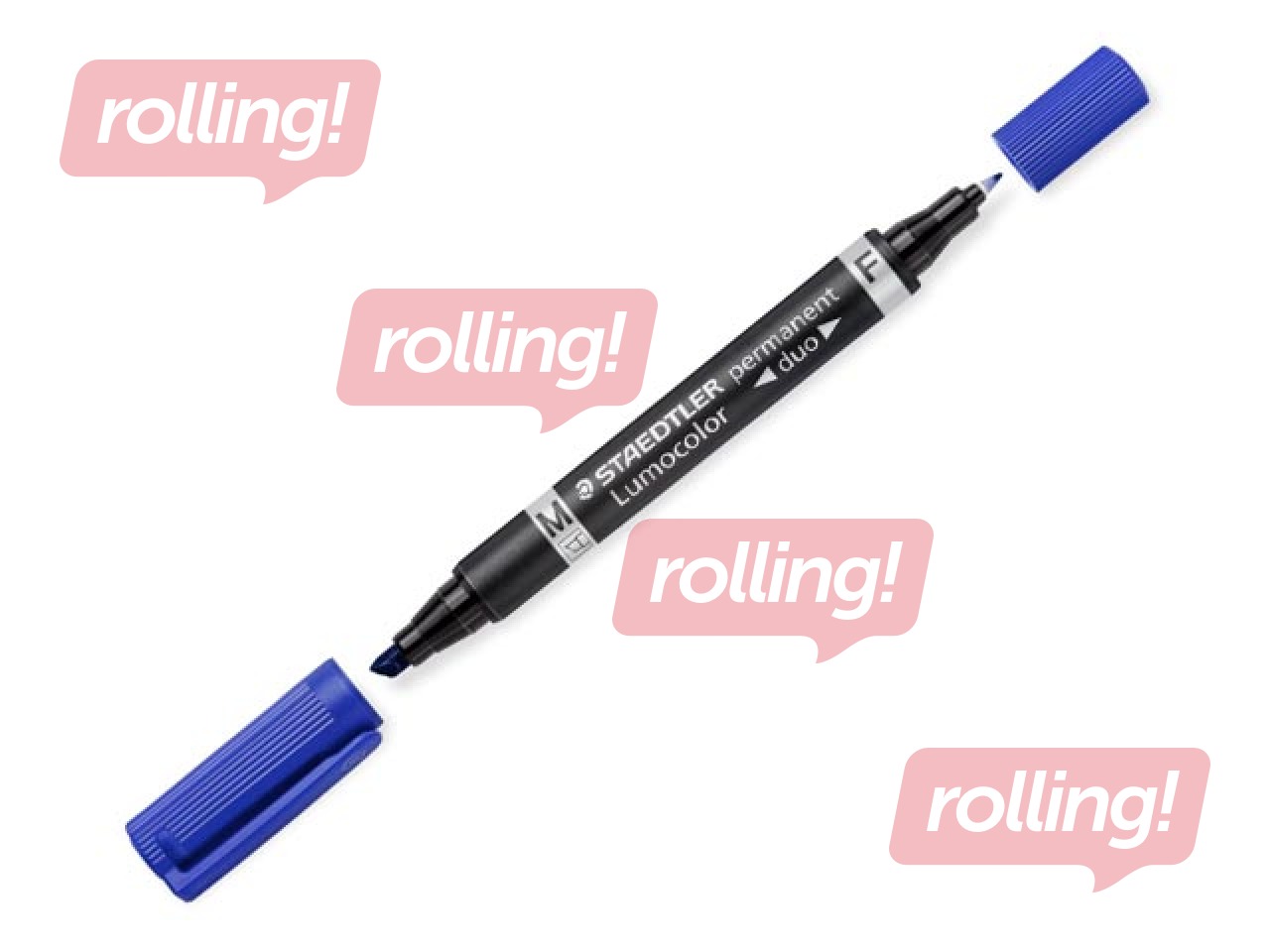 Divi koniski serdeņi, neizžūst, atstājot marķieri bez vāciņa neierobežotu laiku (ISO554), gaismas izturīgs, nožūst 3-6 sekunžu laikā. Līniju platums 0,6 mm un 1,5 mm