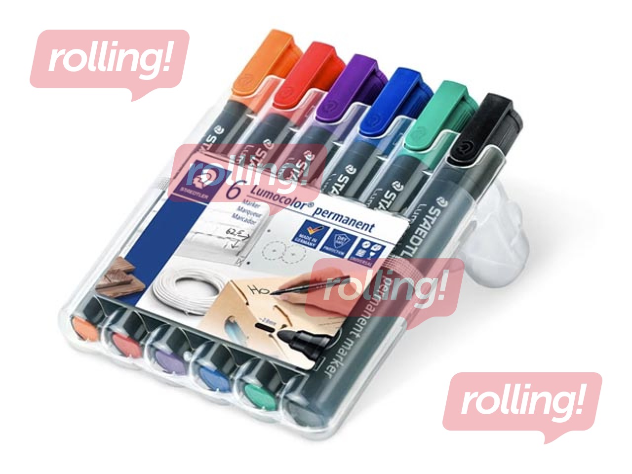 Permanentais marķieru komplekts Staedtler Lumcolor 352, 2mm, 6 krāsas