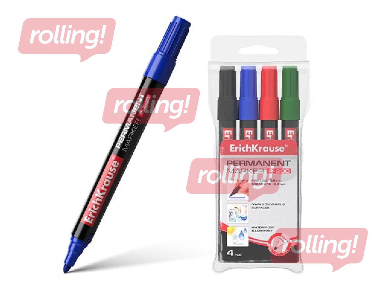 Permanento marķieru komplekts ErichKrause, P-200, 4 krāsas