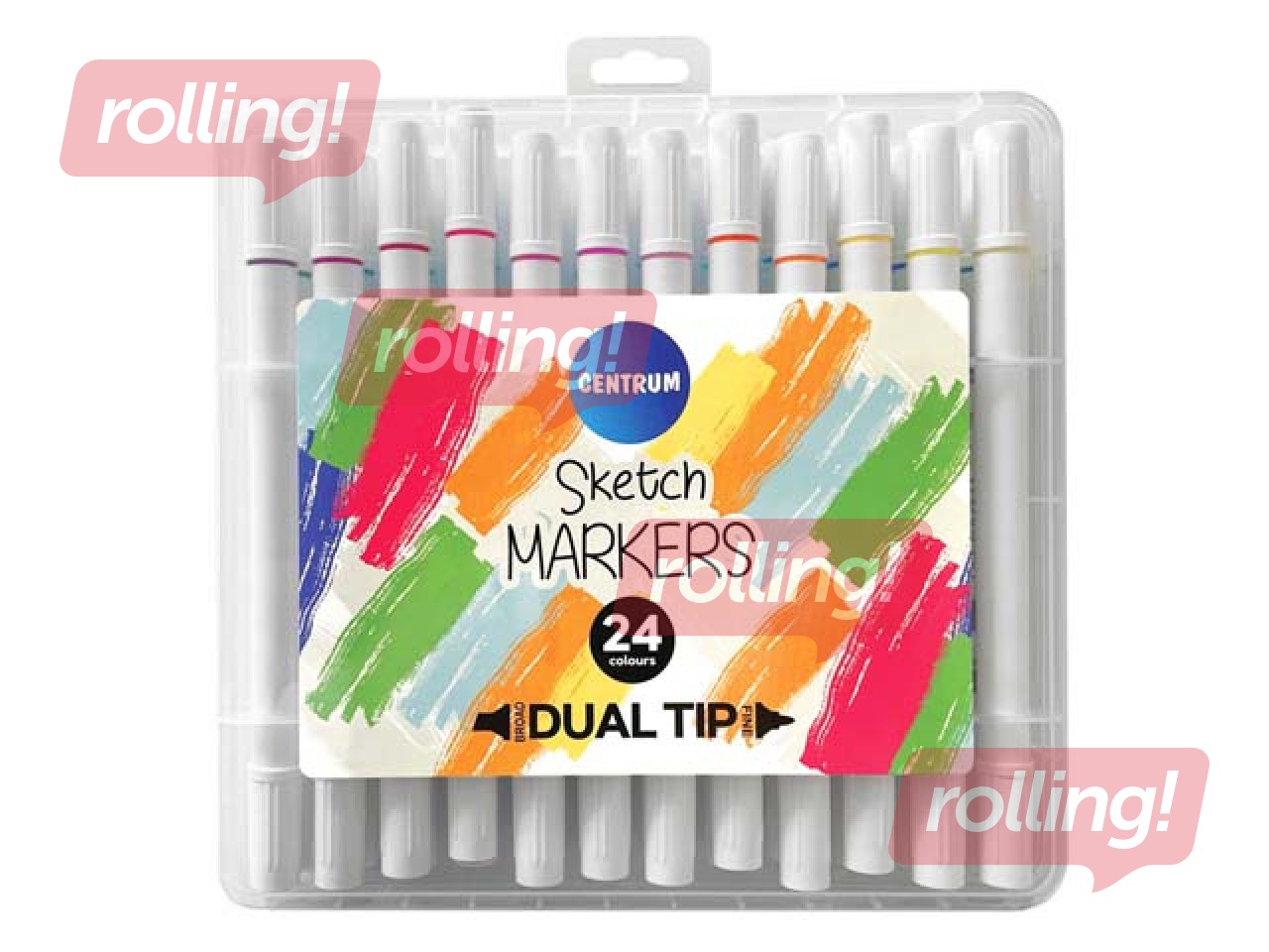Marķieri skicēšanai un zīmēšanai, divpusējie, 24 krāsas