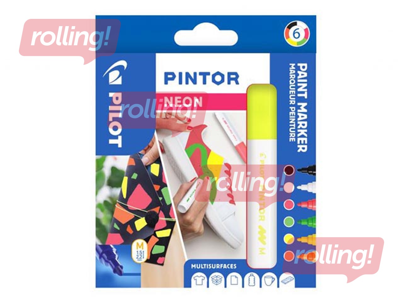 Permanento marķieru komplekts Pilot Pintor, 6 neona krāsas (melna, balta, rozā, zaļa, dzeltena, oranža)