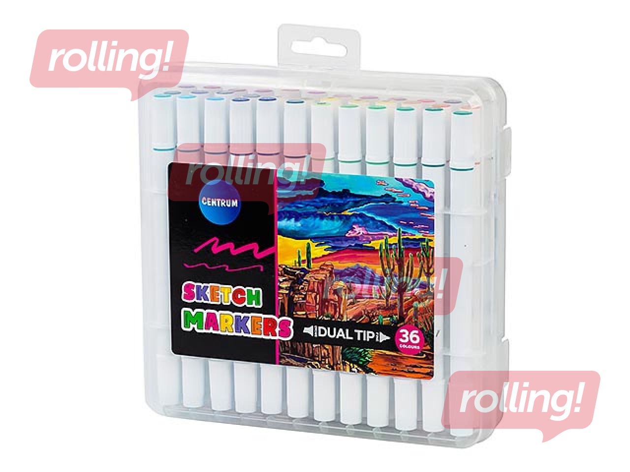 Marķieri skicēšanai un zīmēšanai, divpusējie, 36 krāsas