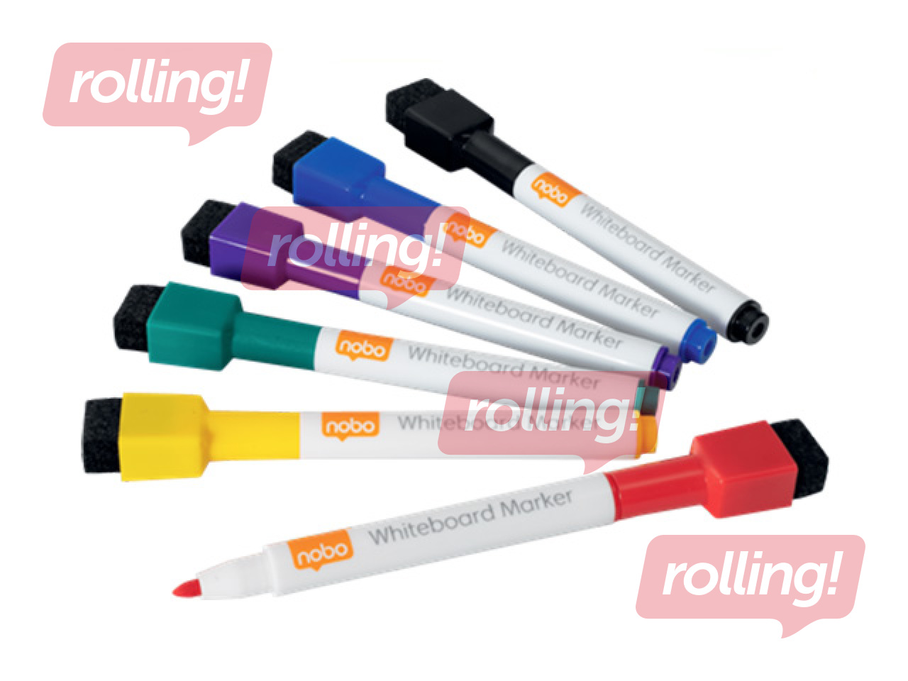 Marķieru komplekts baltajai tāfelei, Nobo, 6 gab., dažādas krāsas