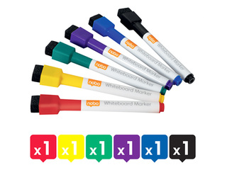 Komplektā: 1x melns, 1x tumši zils, 1x zaļš, 1x dzeltens, 1x sarkans, 1x violets tāfeles marķieris.
