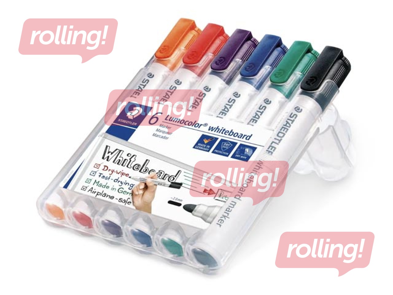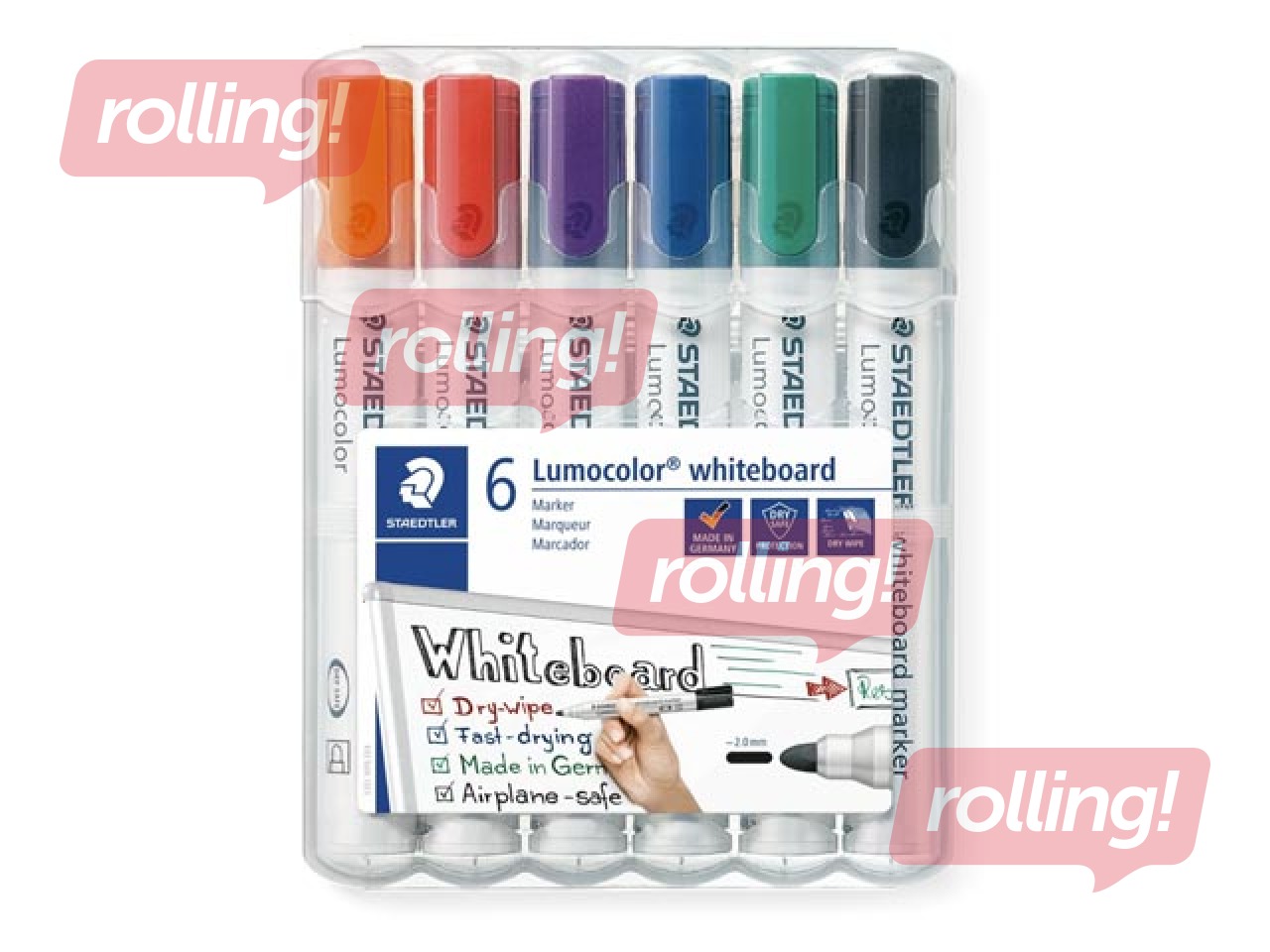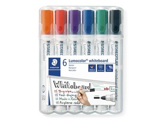 Marķieru komplekts baltajām un stikla tāfelēm Staedtler Lumocolor, 6 krāsas