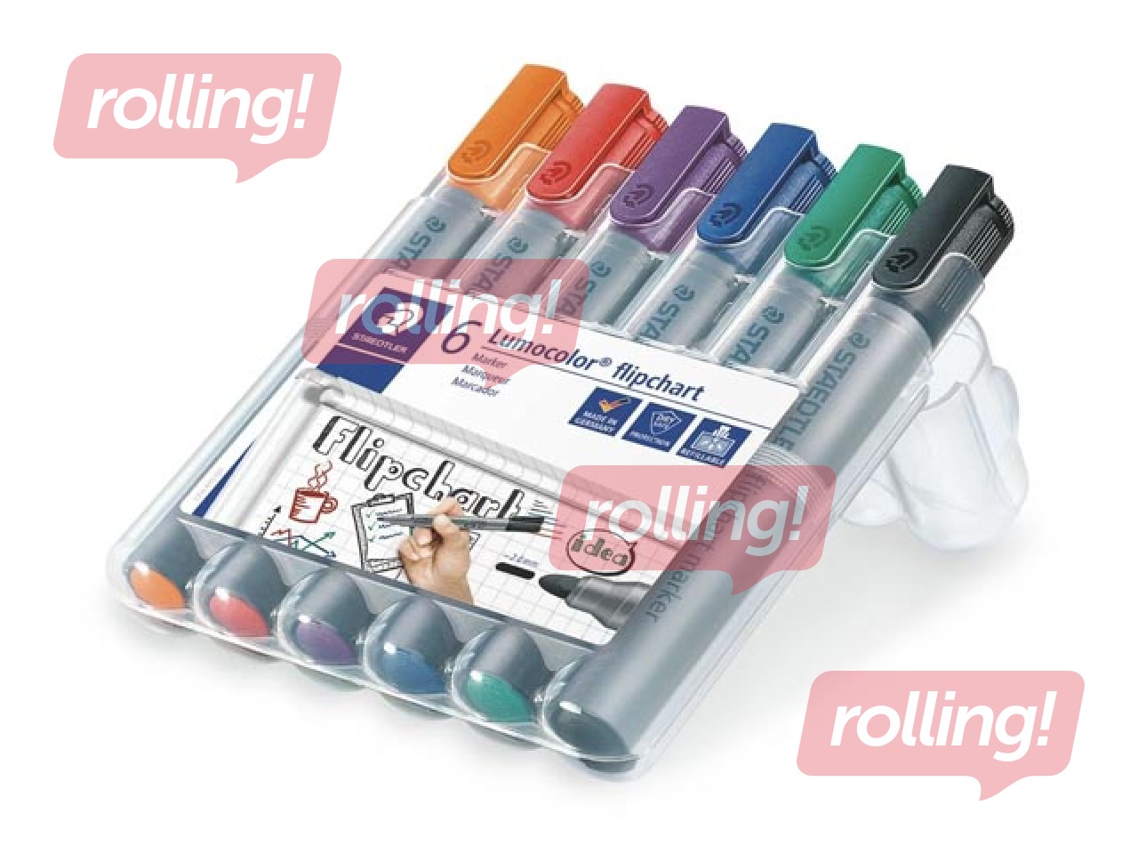 Marķieru komplekts flipchart papīram, Staedtler Lumocolor, 6 krāsas