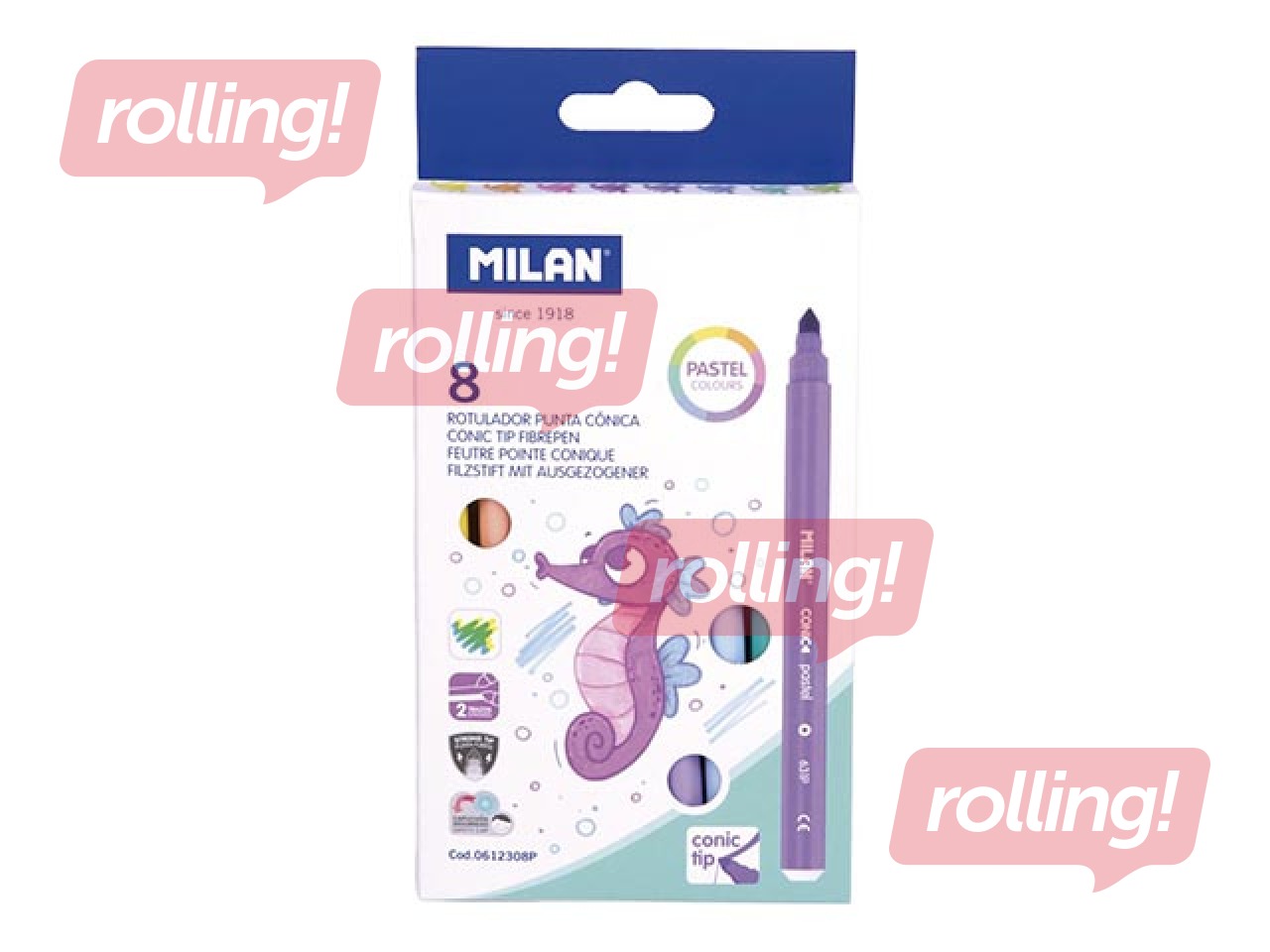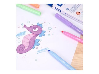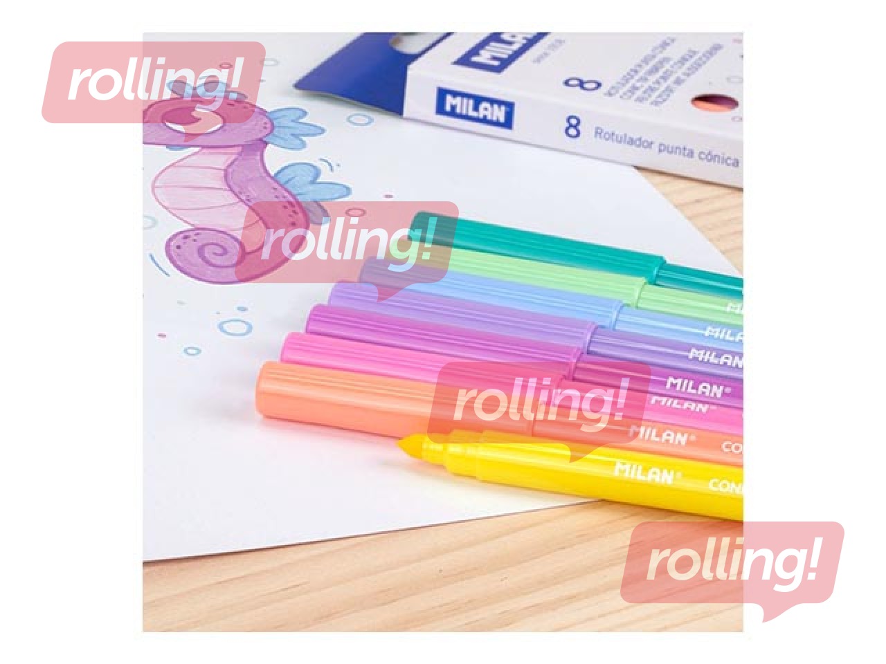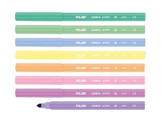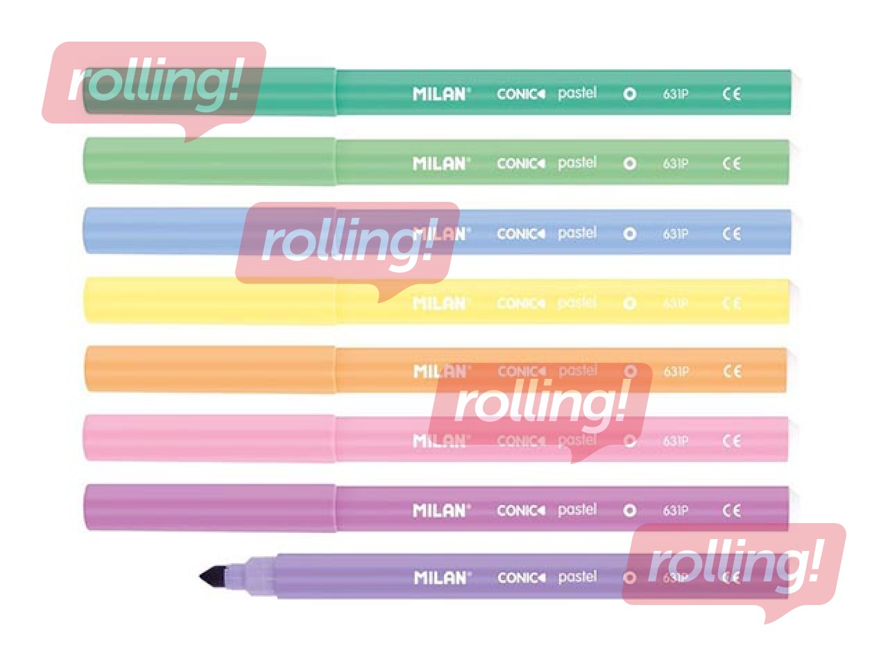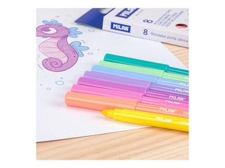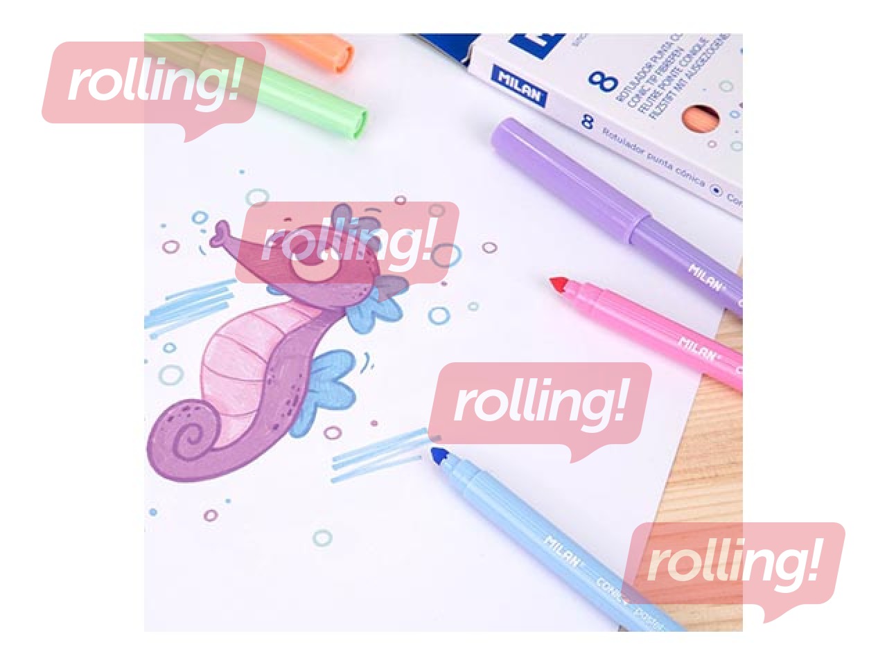 8 pasteļkrāsas: dzeltena, oranža, rozā, violeta, violeta, zila, tirkīza un zaļa.