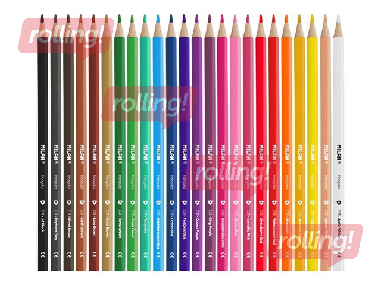 Krāsainie zīmuļi MILAN, trīsstūraini, 24 krāsas