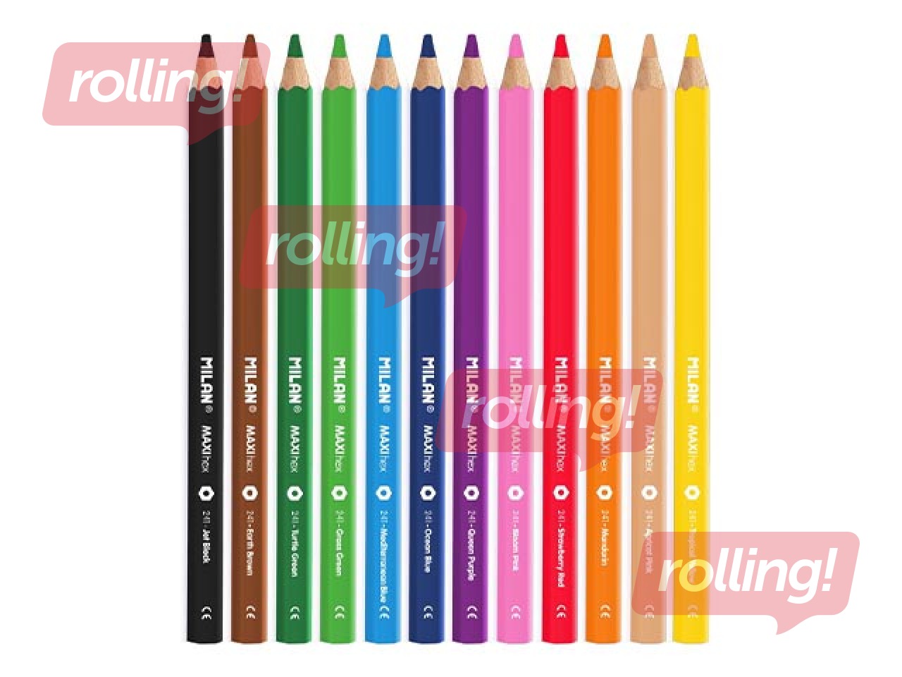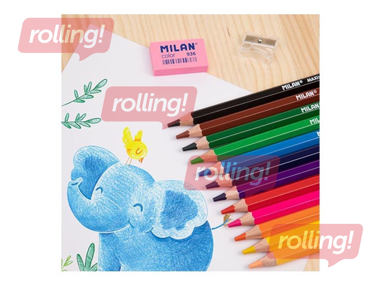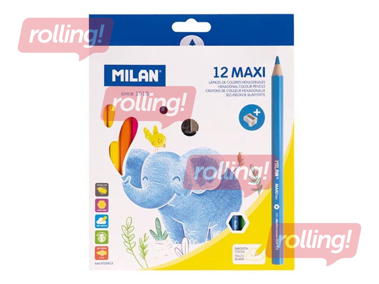Krāsainie zīmuļi Milan Maxi, 12 krāsas, ar asinātāju
