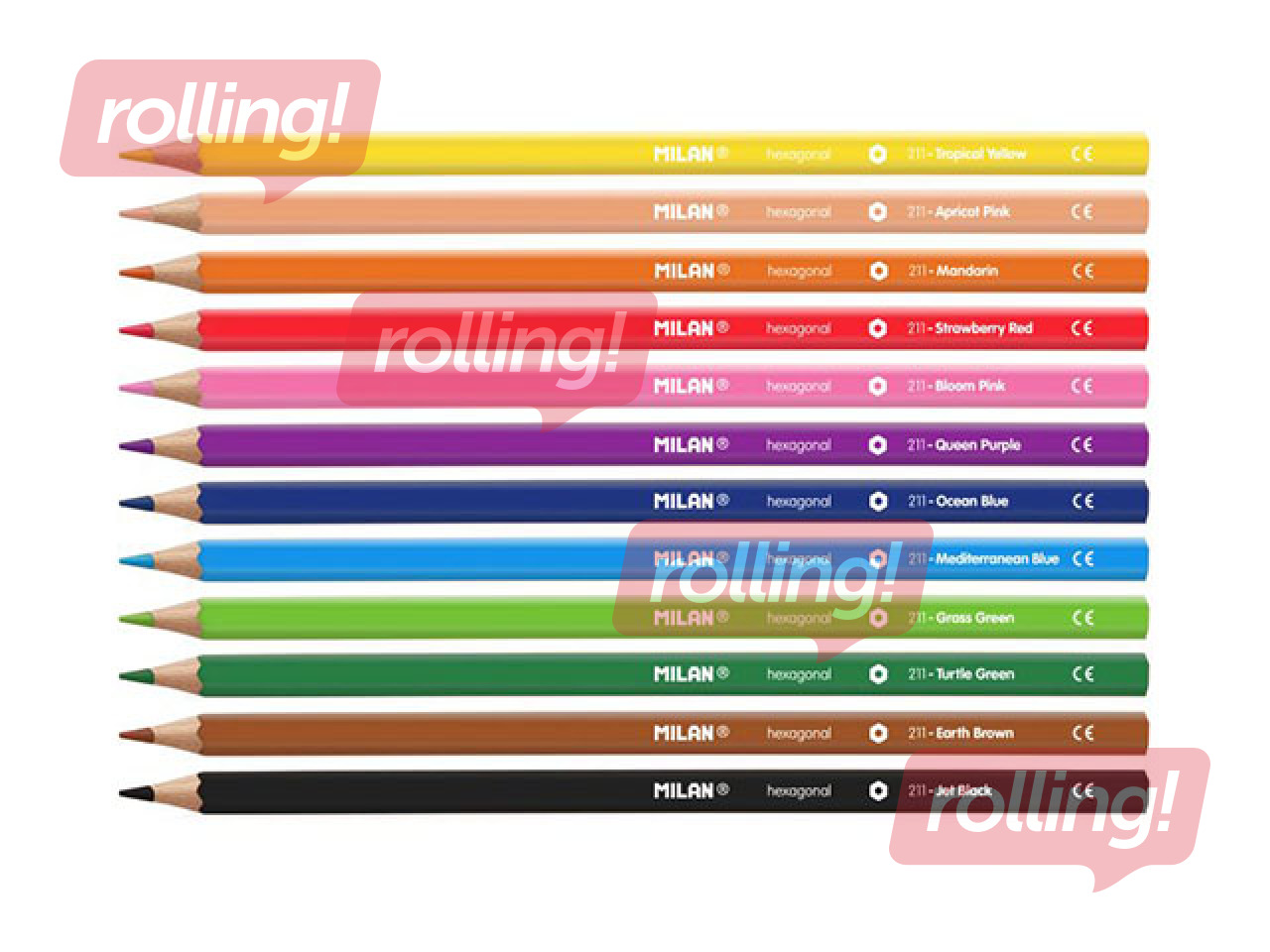 Krāsainie zīmuļi Milan trīsstūra, 12 krāsas