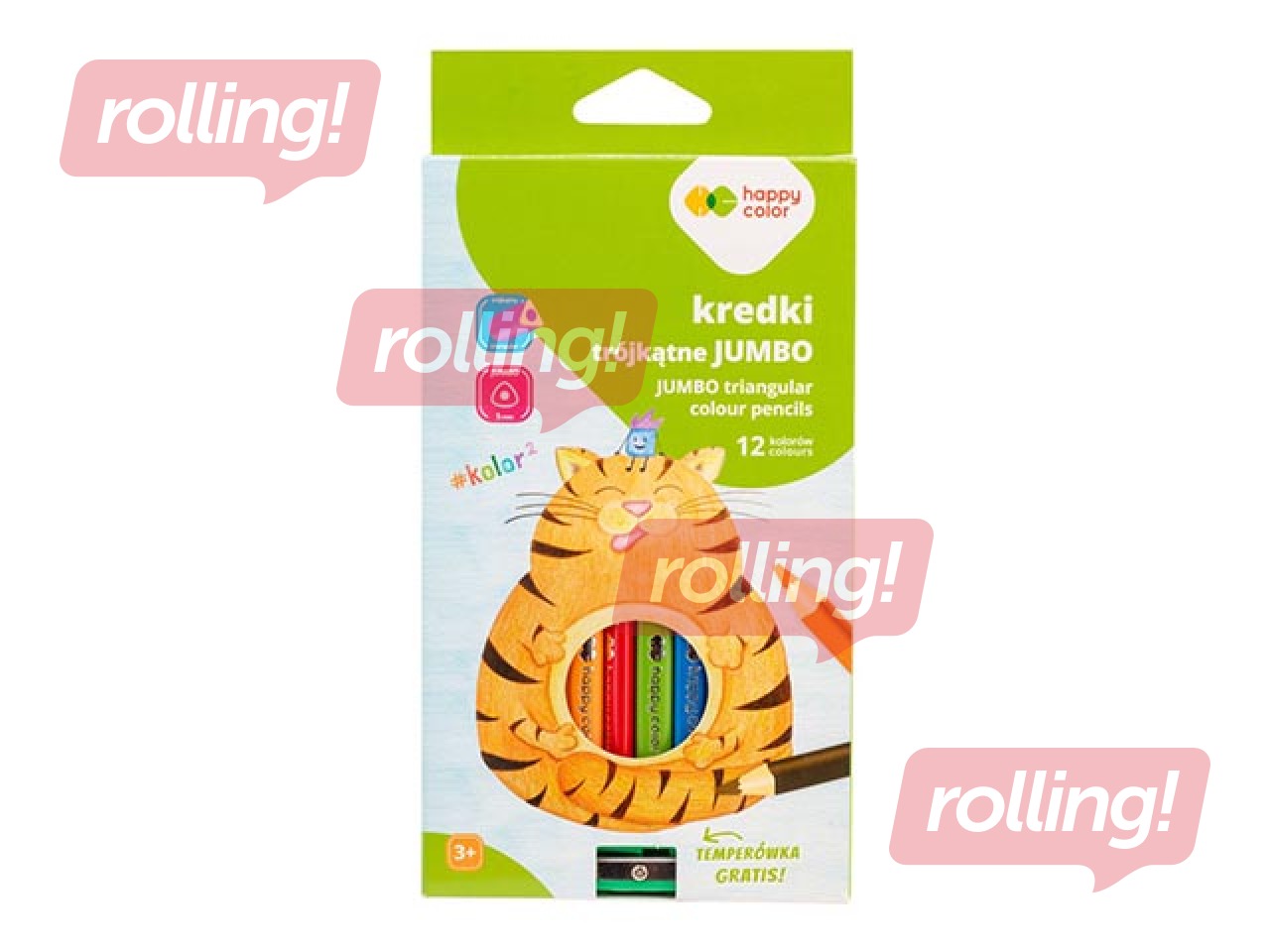 Krāsainie zīmuļi Happy Color, Jumbo, ar asināmo, trīsstūra, 12 krāsas