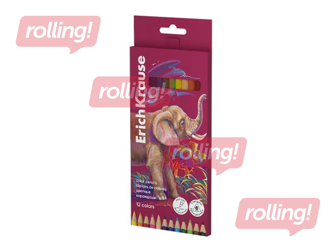 Krāsainie zīmuļi ErichKrause, Safari, trīsstūra, 12 krāsas