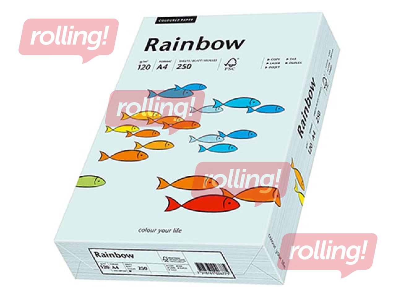 Papīrs Rainbow ir nepārklāts krāsainais papīrs caurspīdīgā iepakojumā, piemērots visa veida printeriem.